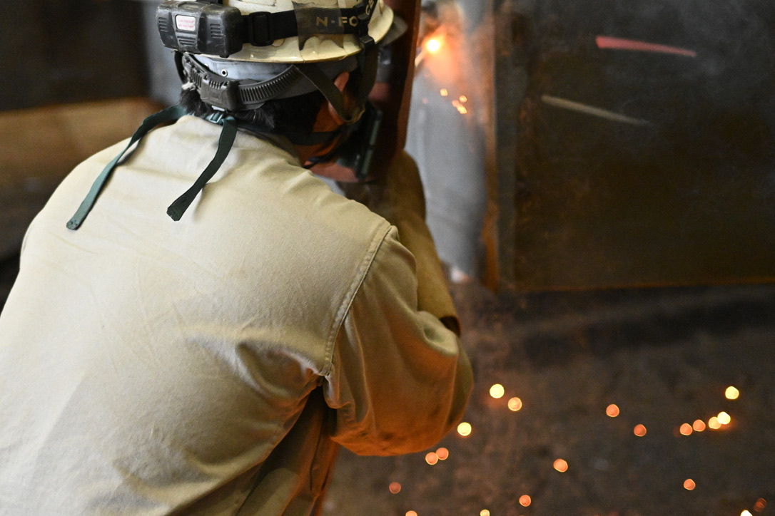 主な仕事は炭酸溶接ですが、現場では仲間と相談しながら進めることが多く、分からないこともすぐに聞ける環境です。